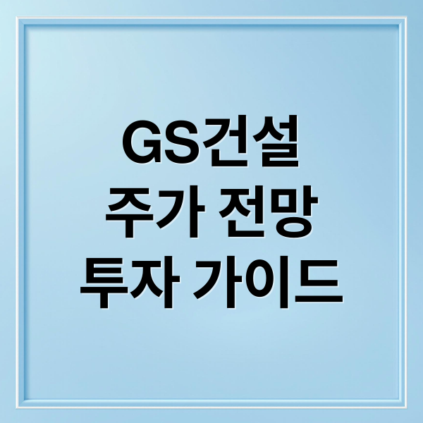 GS건설 집중 분석: 주가, 실적, 투자 포인트 & 향후 전망